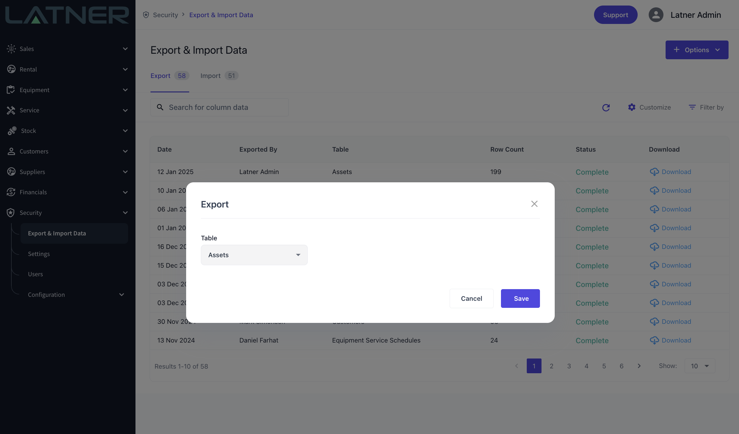 Once the Asset export is completed, it can be downloaded, configured, and imported to setup the Assets in Latner.