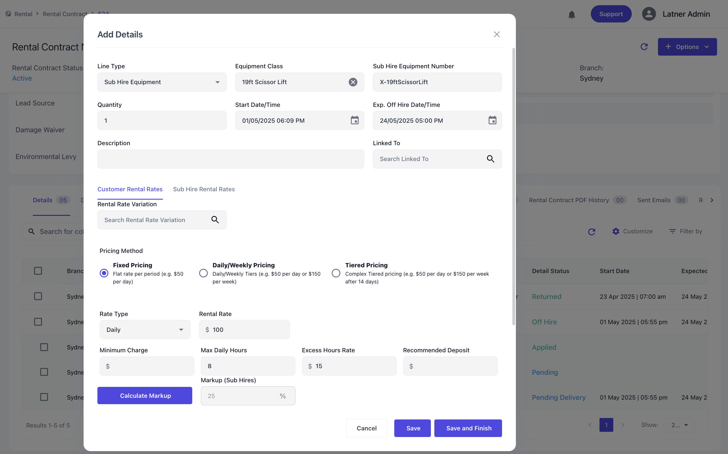 The Sub Hire Markup can now be calculated when adding a Sub Hire Equipment line to a Rental Contract. A minimum markup percentage can also be enforced Globally or at an Equipment Class level.