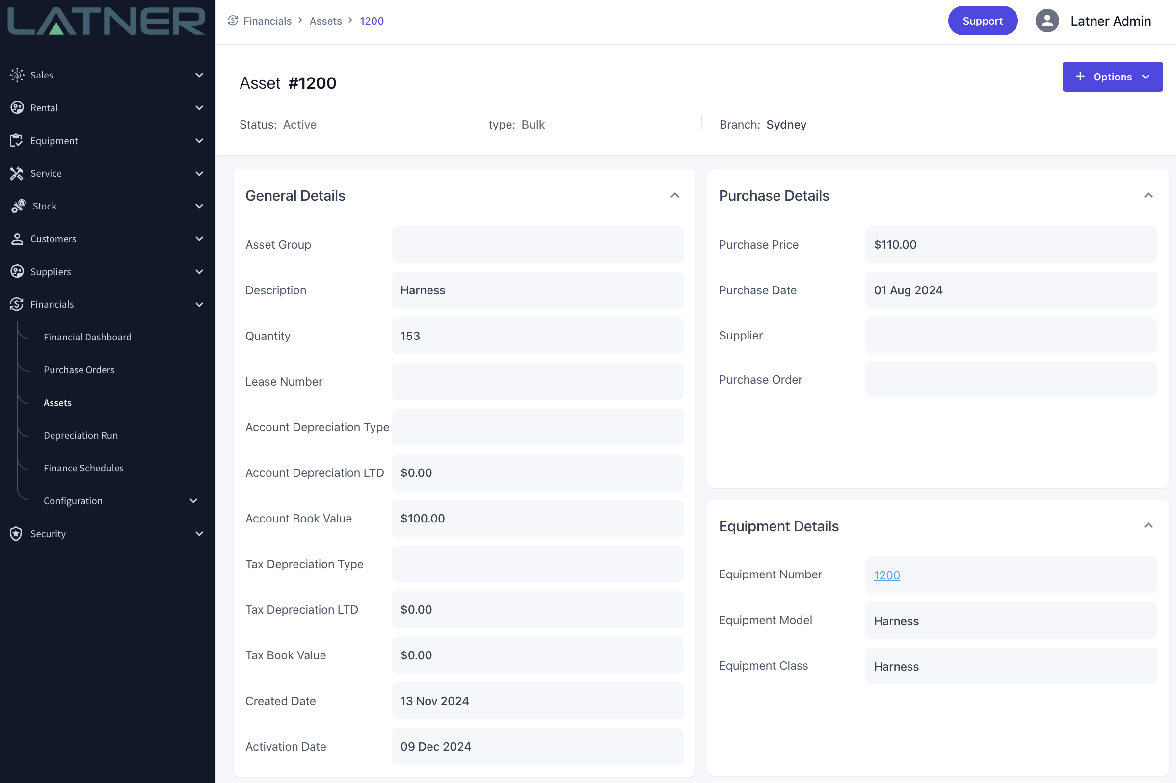 Once these values are entered the Asset can be Activated from the Options menu under Options > Activate Asset