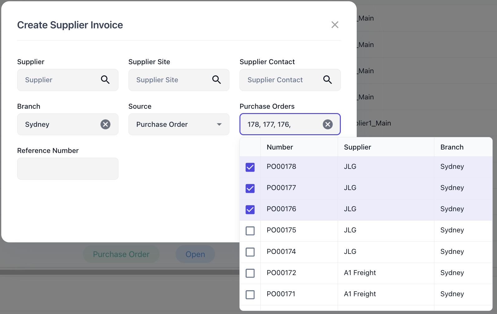 When creating a Supplier Invoice multiple Purchase Orders can be assigned