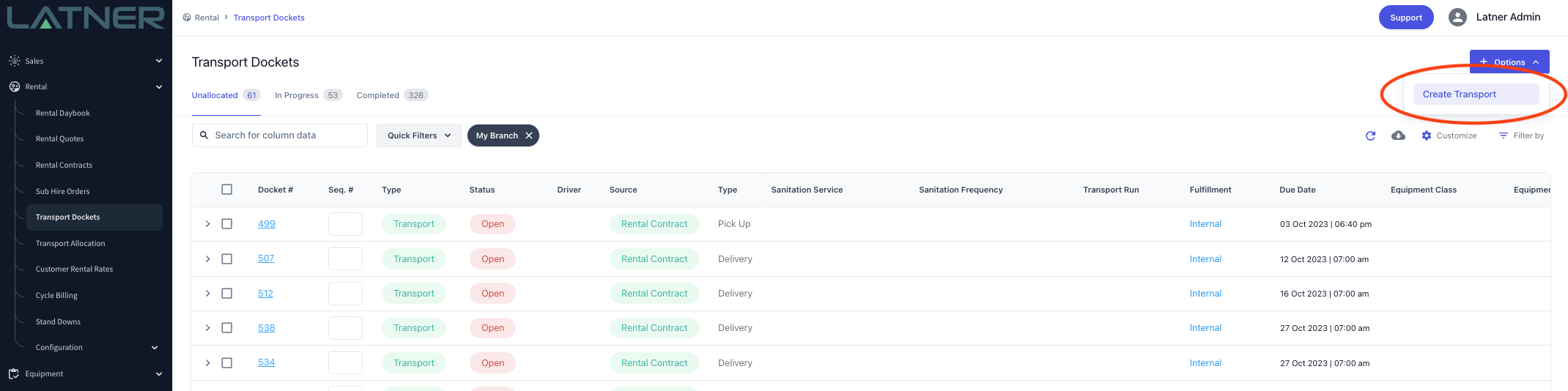 Manual Transport Dockets can now be created from the Transport Docket Screen