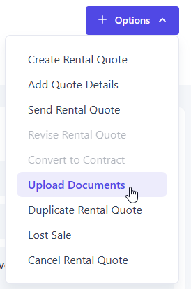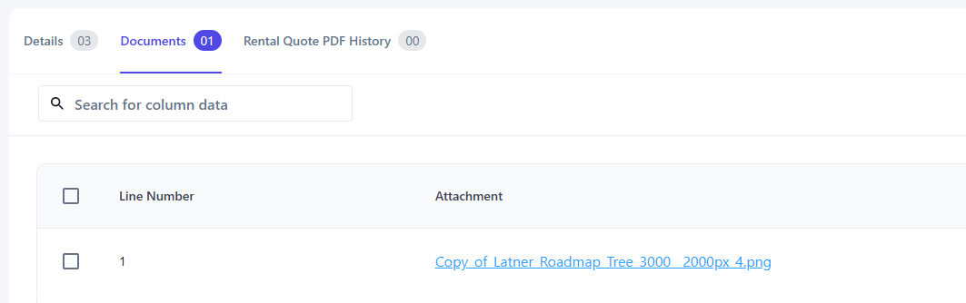 A user might want to attach a document to a rental quote, such as information about the customer, job site or equipment. The user can attach a document or image to the rental quote and it will display in the documents tab in the rental quote details., each time a new document is uploaded it will add a new attachment line.