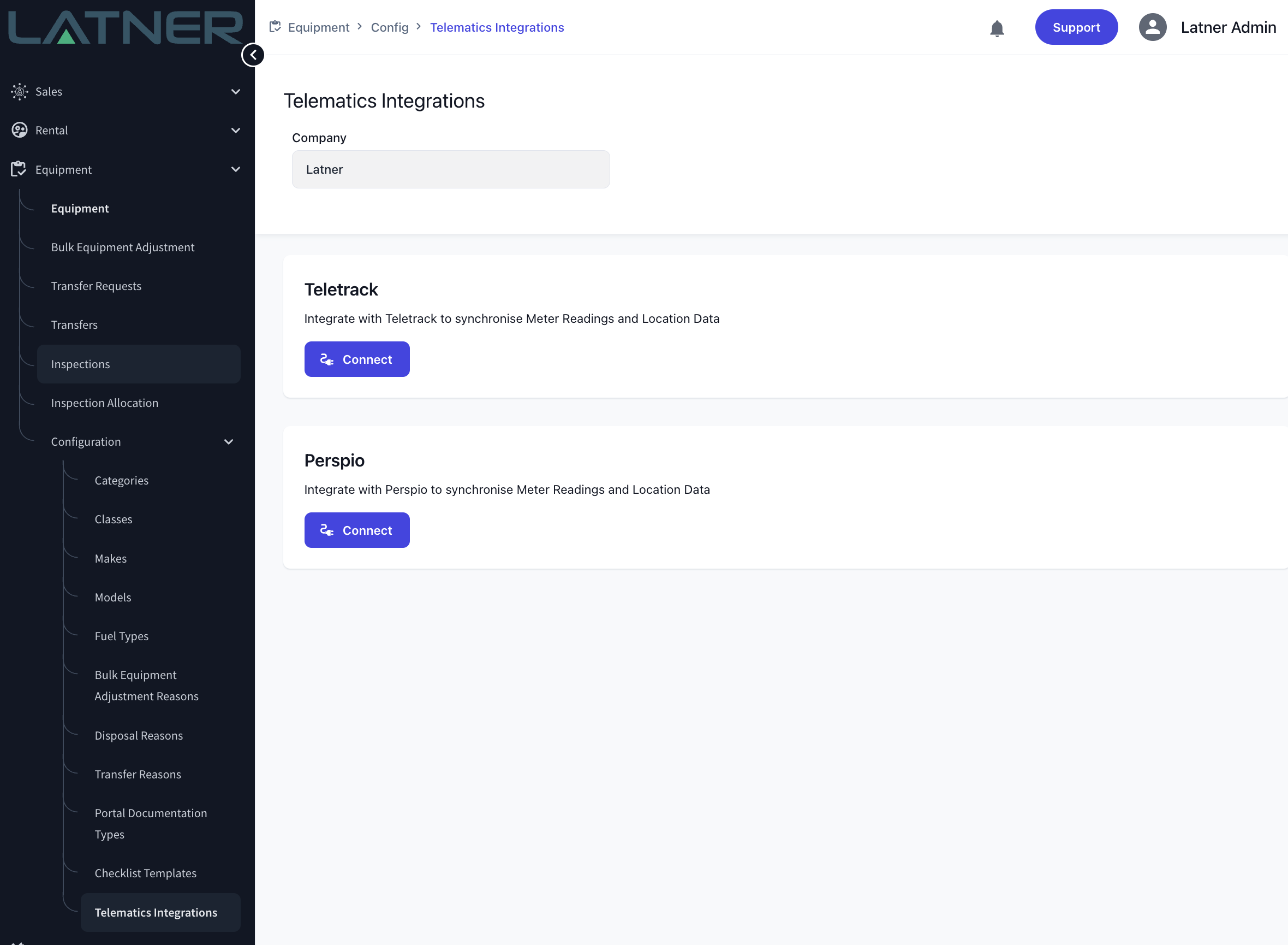 Latner can now be integrated with Perspio to pull Meter Readings directly into Latner. The integrations have also been enhanced to be able to pull location coordinates for Equipment