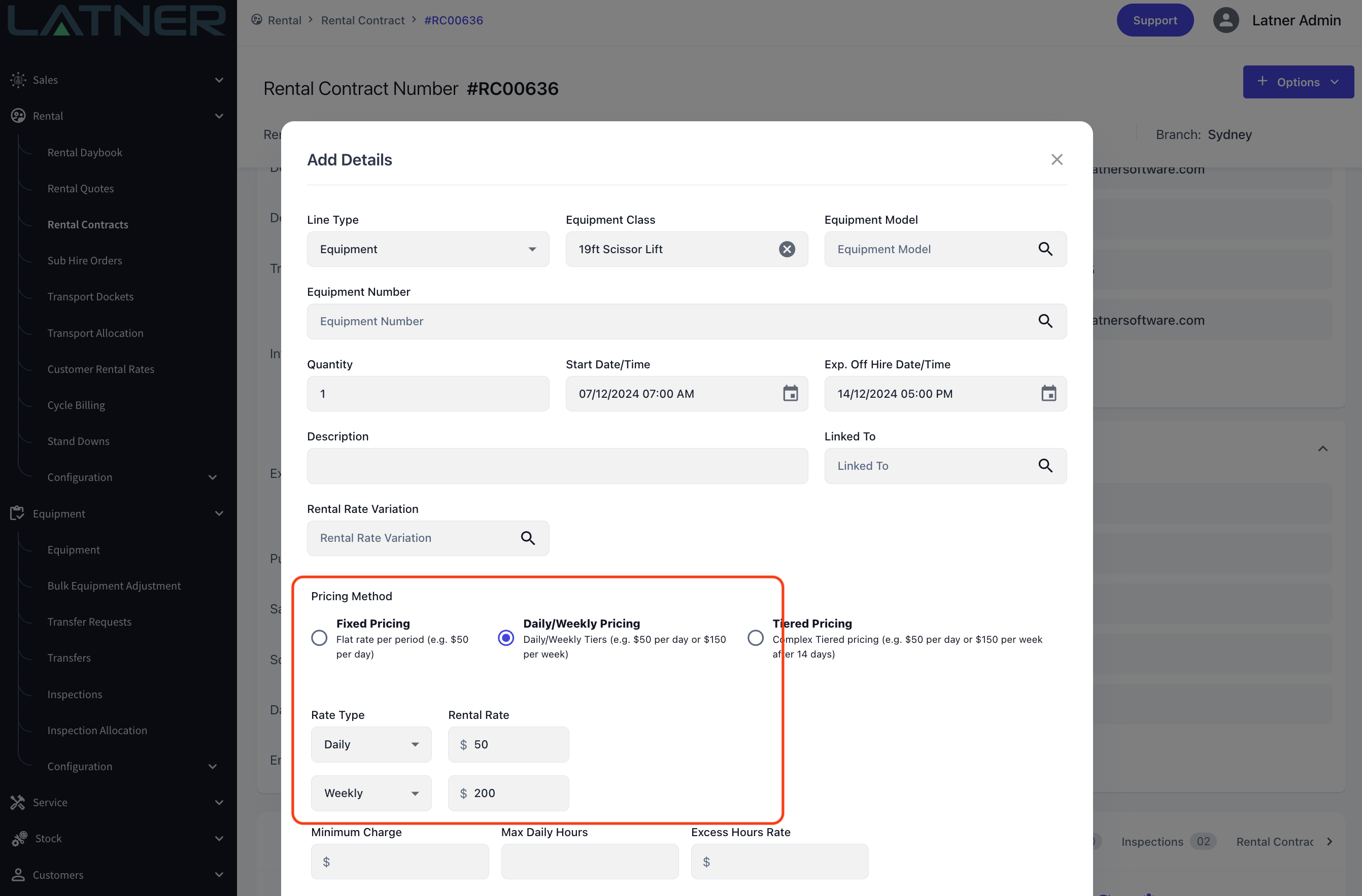 New Daily / Weekly Rental Rate Pricing Method