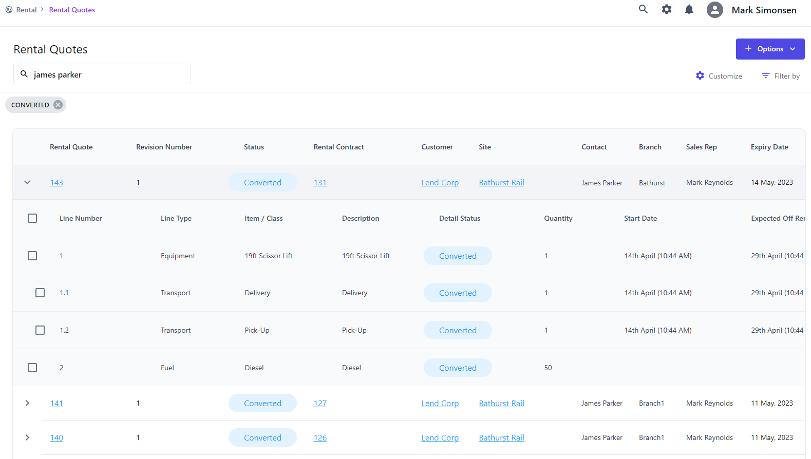 A search screen provides a list of all records in that particular module. So for example clicking on rental quotes will display a list of all rental quotes. This is can be reduced by searching and/or filtering the data in the list.